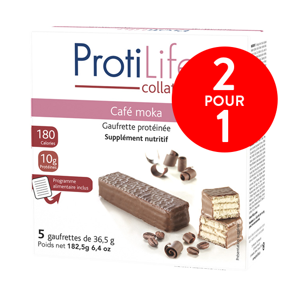 Boîte de 5 gaufrettes. La Gaufrette protéinée café moka est délicieusement conçue pour venir soutenir votre appétit entre vos repas. Aussi, cette gaufrette, à la fois croustillante et moelleuse, a un goût de torréfaction supérieure dont vous allez raffoler. Petit truc à découvrir : essayez de tremper la gaufrette dans votre café ou encore congelez votre gaufrette pour une délicieuse collation glacée.