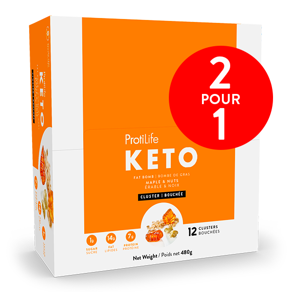 Boîte de 12 bouchées. La Bouchée Érable & Noix de ProtiLife Keto est succulente et s’intègrera à merveille dans votre mode de vie cétogène. La bombe de gras qu’il vous manque pour passer au travers de votre journée! Vous n’aurez jamais mangé une bombe de gras Keto aussi délicieuse. De plus, nous avons pris le temps de rassembler les bons ingrédients, dont le gras TCM, afin de vous offrir un produit de haute qualité. TELLEMENT savoureux et somptueux que vous allez en saliver!